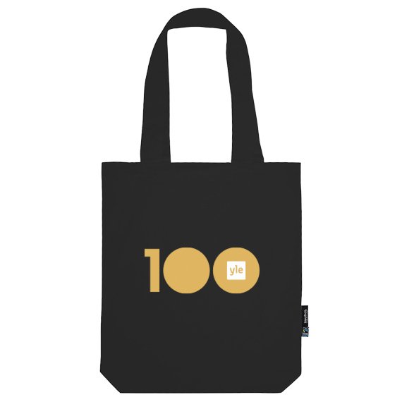 The high-quality anniversary tote bag withstands use. Made of thick (210 g/m²) and Fair Trade 100% organic cotton. All seams of the Yle 100 tote bag are reinforced to last for years. The spacious dimensions of 42 x 38 x 7 cm and total length with handles (66 cm) make the bag a practical choice for shopping, work, or leisure.